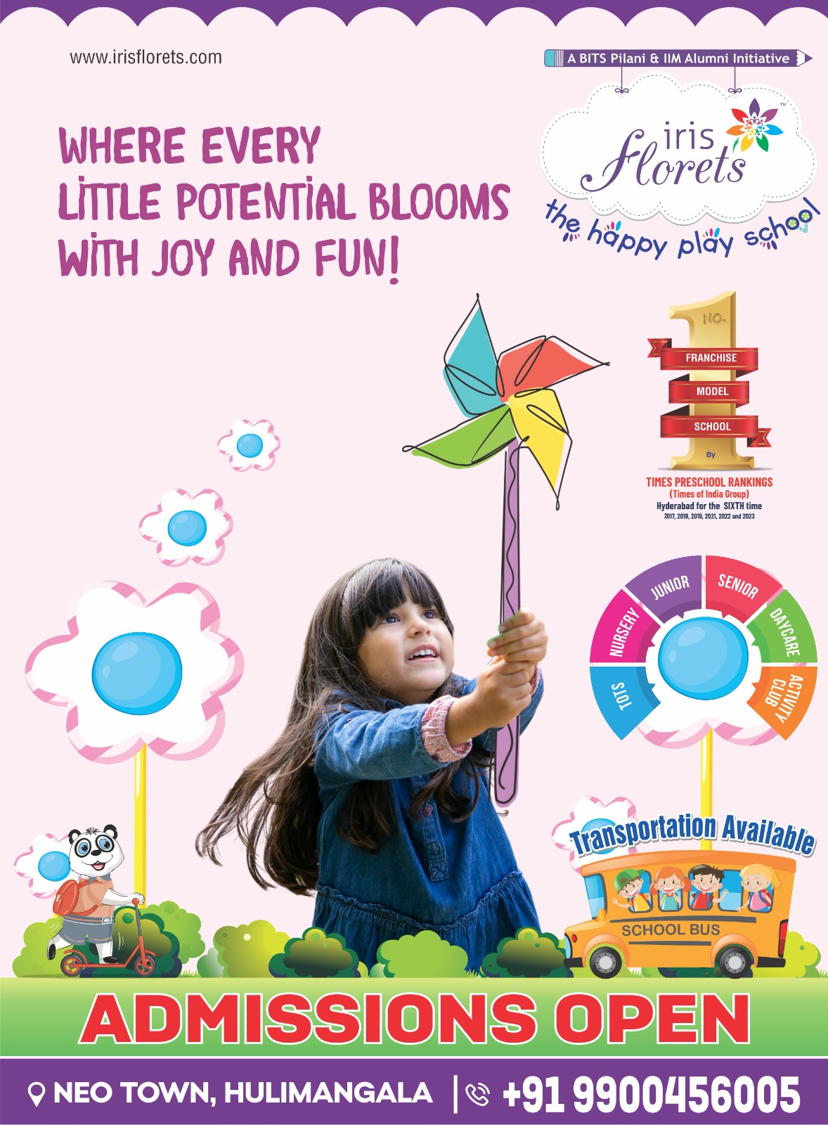 Iris Florets Pre School & Daycare is a child centric centre at Bangalore Electronic-city-phase-1. Their preschool services operates from 8:30 am - 1.30 pm and daycare services operates from 8:30 am - 7 pm. The centre is reachable at 9900456005 and irisfloretsneotown@gmail.com.