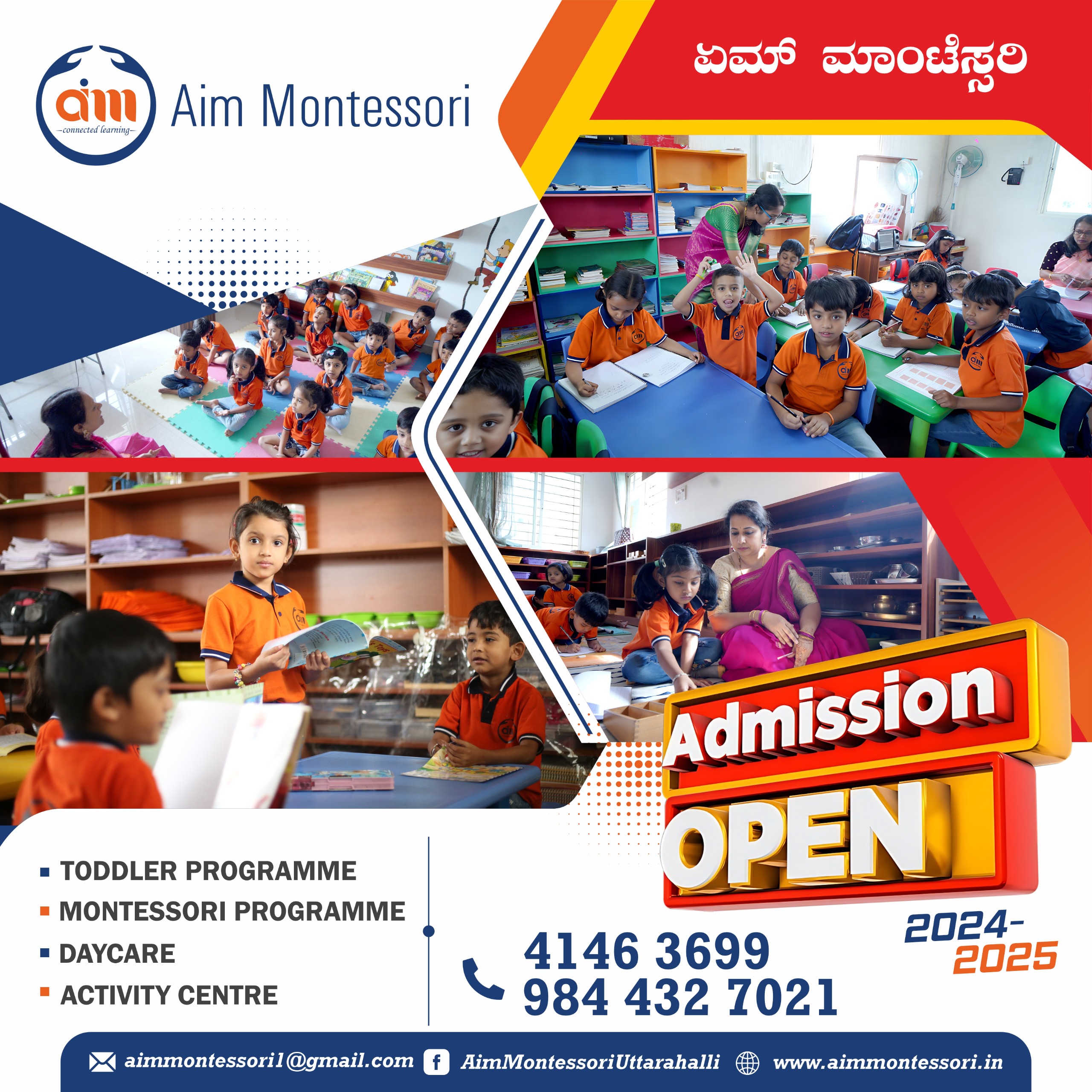 Aim Montessori is a child centric centre at Bangalore Uttarahalli. Their preschool services operates from 4.5 and daycare services operates from NA. The centre is reachable at 08041463699/9844327021 and aimmontessori1@gmail.com.