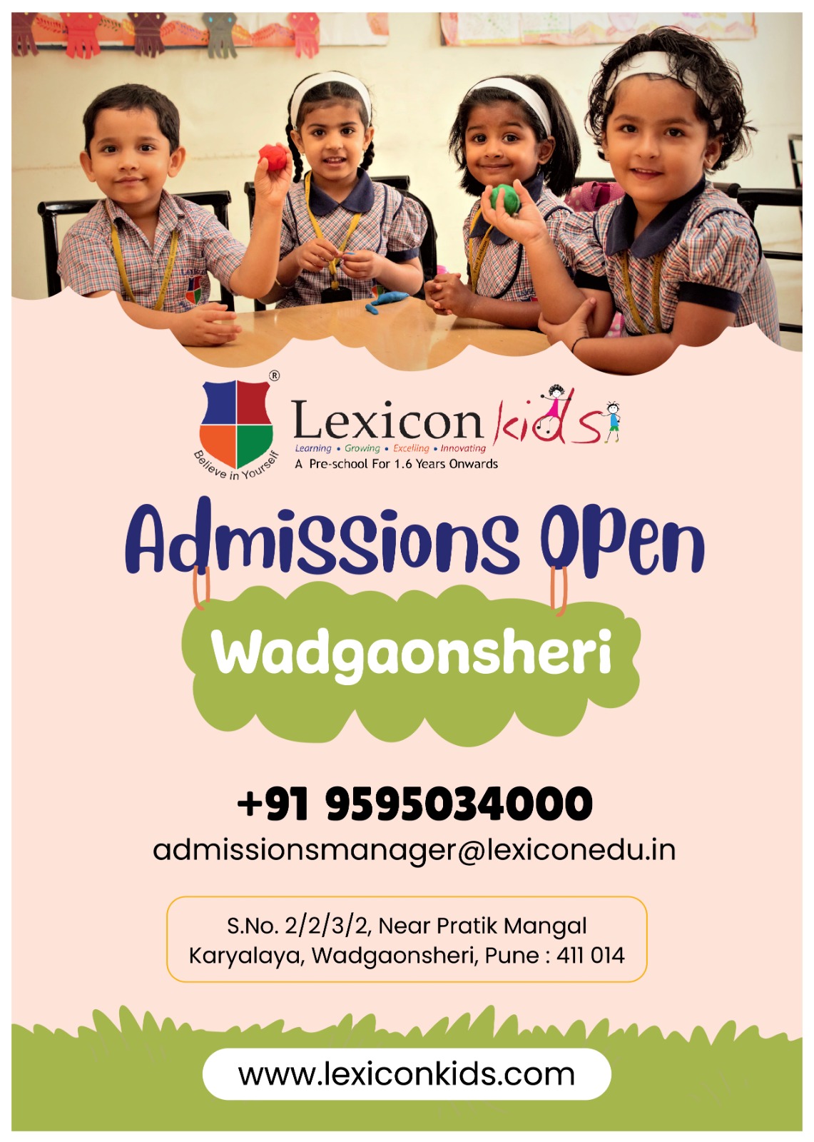 Lexicon Kids Wadgaonsheri is a child centric centre at Pune Vadgaon-sheri. Their preschool services operates from 8:30 am to 4:00pm and daycare services operates from 9:00am to 7:00pm . The centre is reachable at 9595034000 and lexiconkidswadgaonsheri@gmail.com.