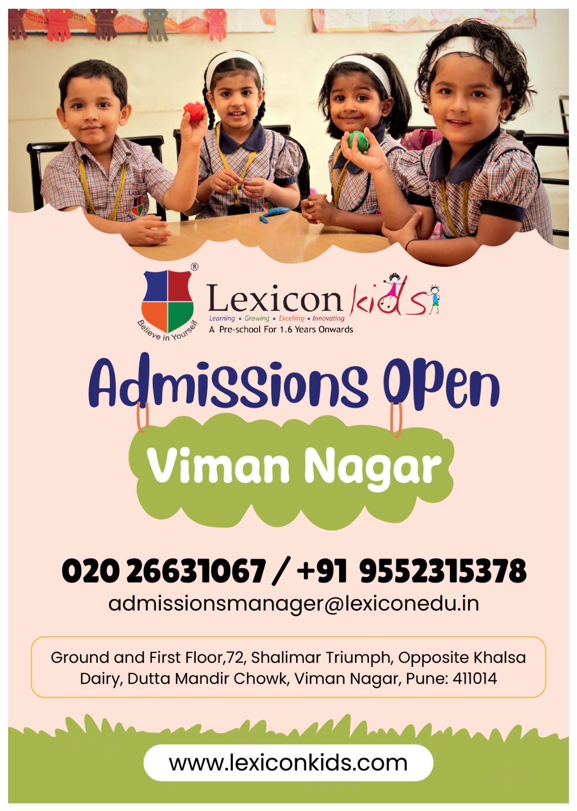 Lexicon Kids Viman Nagar Preschool And Child Development Centre is a child centric centre at Pune Viman-nagar. Their preschool services operates from 8:30 am - 4 pm and daycare services operates from 9 am - 7 pm. The centre is reachable at 02026631067/9552315378 and admin.kids@lexiconedu.in.